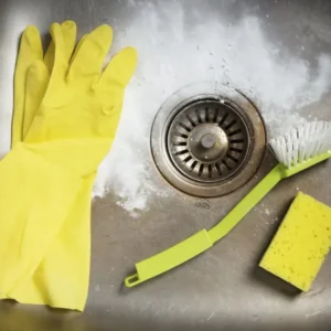 Logo, utilize um produto multi-uso para limpar a geladeira, microondas e fogão. Deixe a pia para o final, pois será utilizada durante todo o processo. Por fim, passe o aspirador de pó no piso e um pano úmido, como na sala de estar.