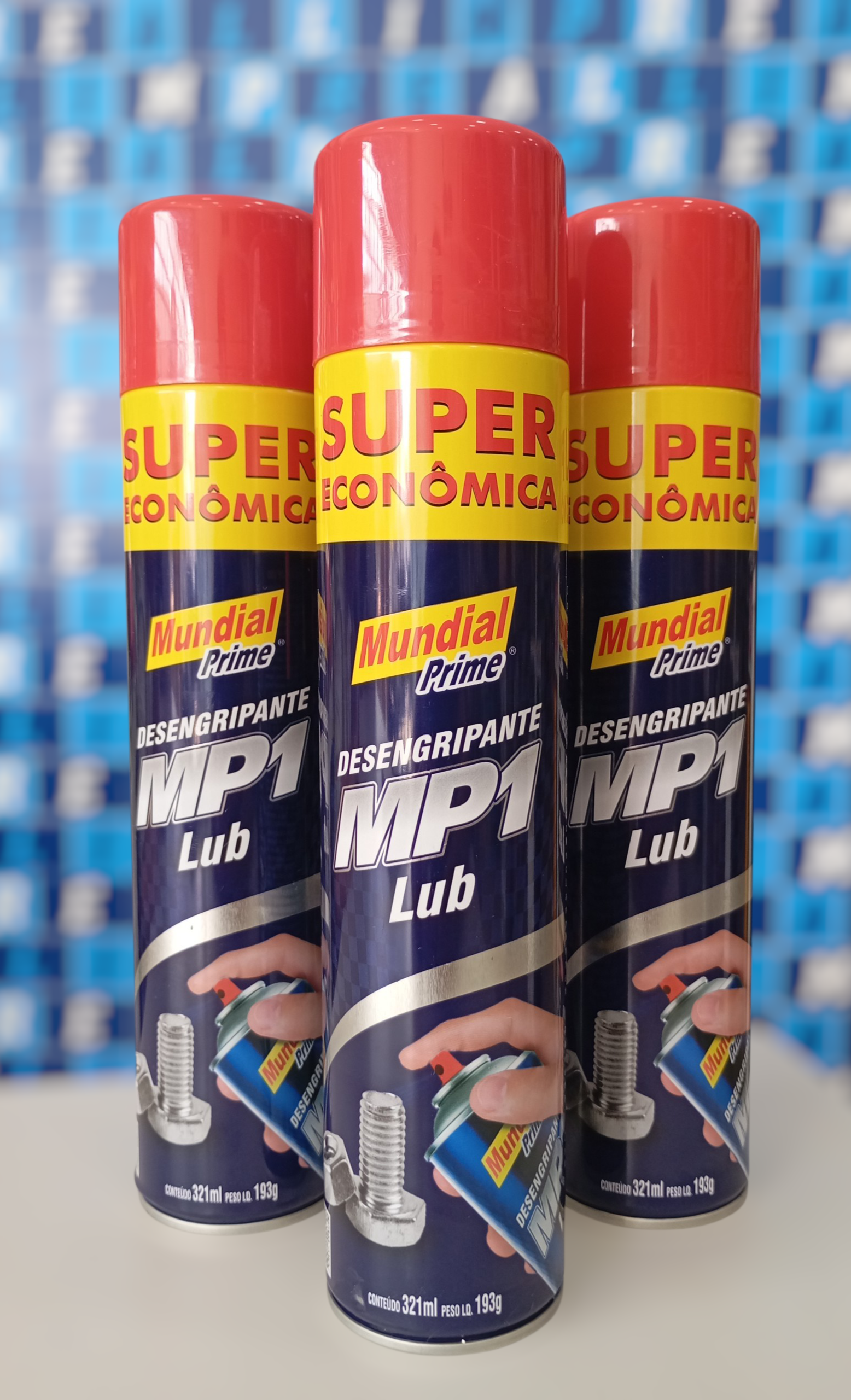 O desengripante Mundial Prime MP1 é um spray anticorrosivo multifuncional, ideal para desengripar, lubrificar e proteger peças metálicas contra ferrugem e umidade. Sua fórmula de ação rápida penetra profundamente, facilitando a remoção de porcas/parafusos travados, lubrificando dobradiças e protegendo componentes elétricos, sendo essencial para manutenção industrial, automotiva e doméstica.
