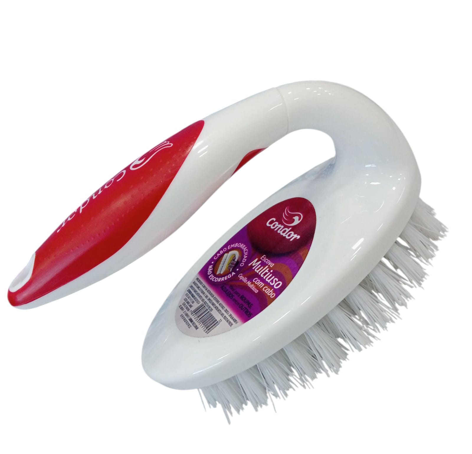 A escova plástica de roupa Condor com cabo é um utensílio ergonômico e durável, ideal para limpeza pesada e delicada. Possui cerdas sintéticas firmes, corpo em polipropileno e cabo emborrachado antiderrapante que protege as mãos. É indicada para roupas, tapetes, calçados e azulejos.