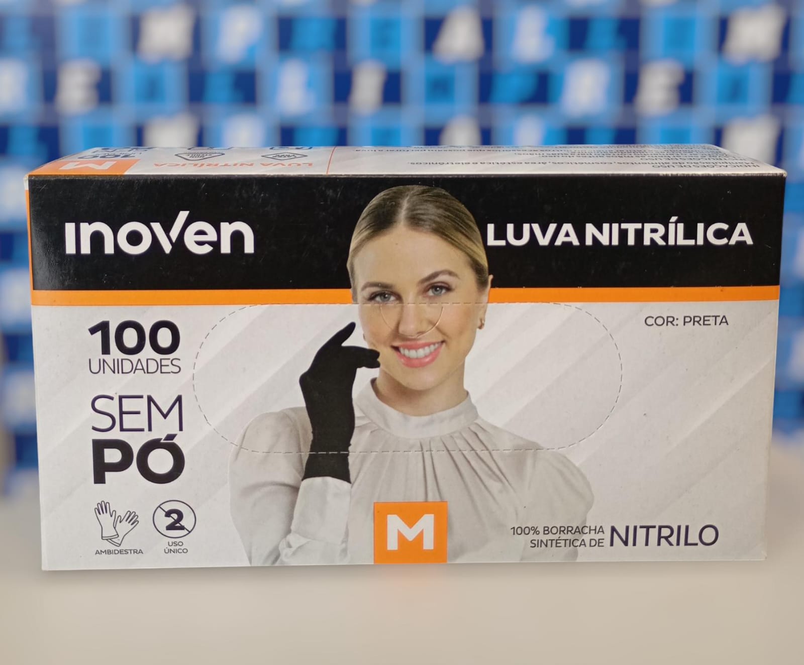 Luva Nitrílica M Inoven preta sem pó (100un)