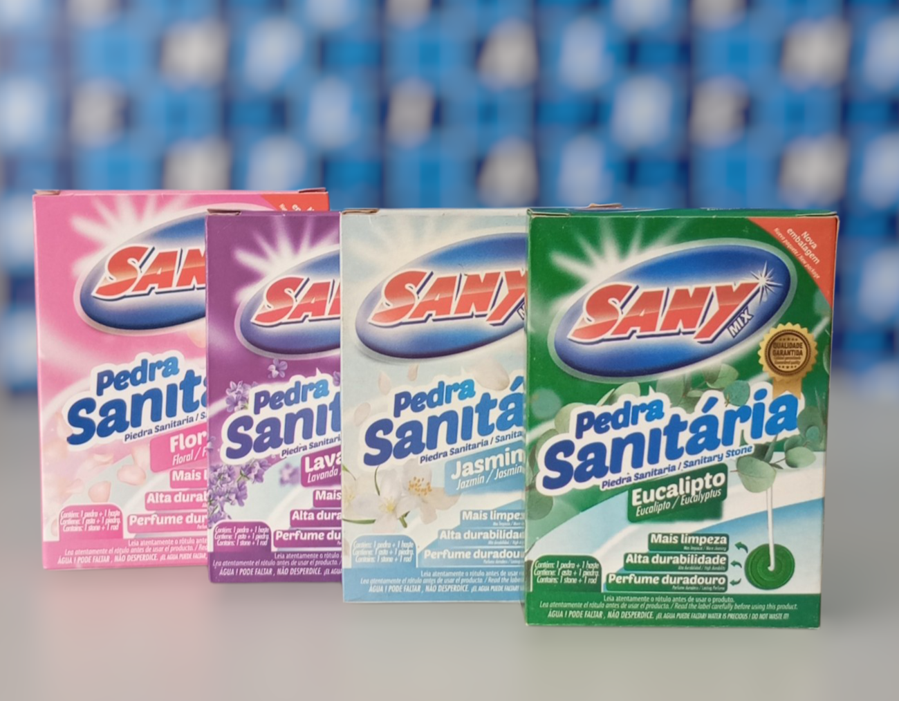 A Pedra Sanitária Sany é um produto para vaso sanitário que perfuma e limpa a cada descarga, contendo agentes que controlam odores e deixam um cheiro agradável (como jasmim, lavanda, floral, eucalipto) com formulação que inclui essências, corantes antimicrobianos, sendo fácil de usar com suporte plástico e ideal para manter o ambiente fresco e higiênico.